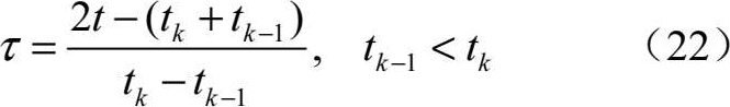 通过此变换将每个 t ∈[ t k-1 , t k ]都转换到 τ ∈ [−1,1]区域内,并对 t 求导可得