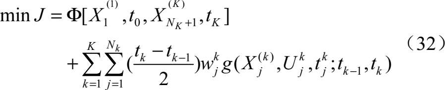 通过以上变换,连续最优控制问题转化为了非线性规划问题。离散化的表达式如下: