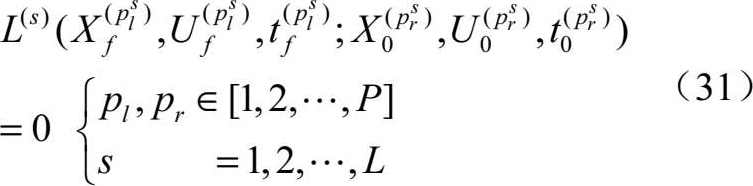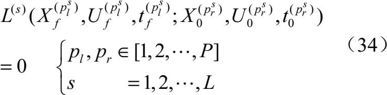 式中,1≤ l ≤ L , l ≤ i ≤ n , l ≤ j ≤ m ,L为各网格区间内的配点数, n 为计算过程中的状态微分方程个数, m 为约束条件个数。