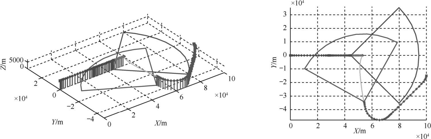 图7 UCAV远距攻击占位航迹水平视图