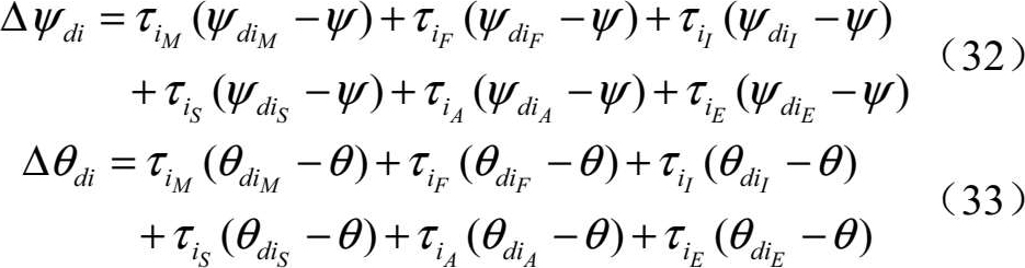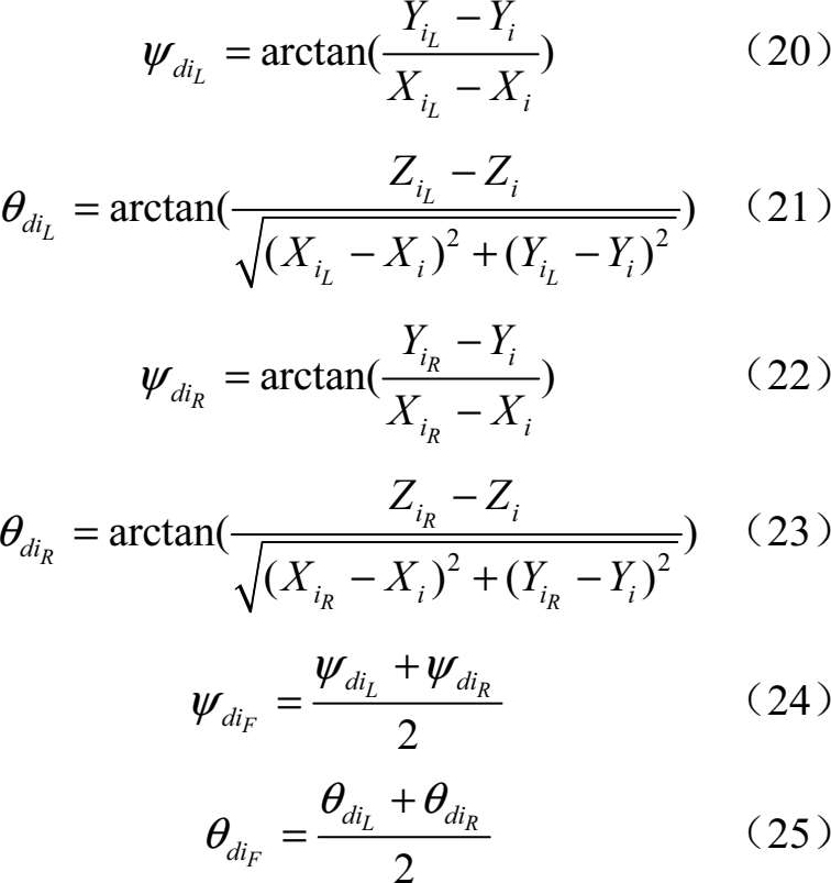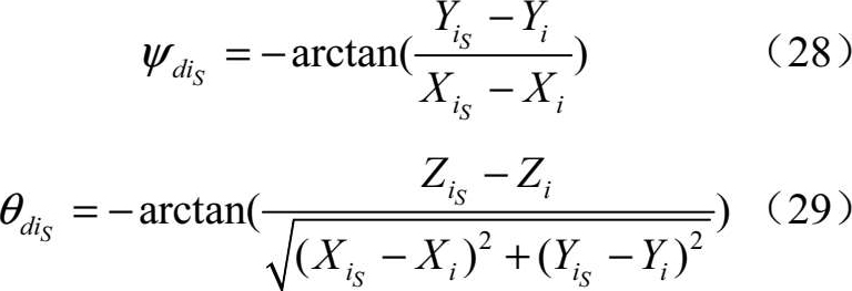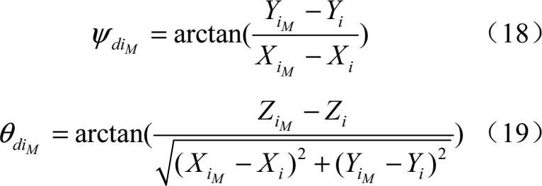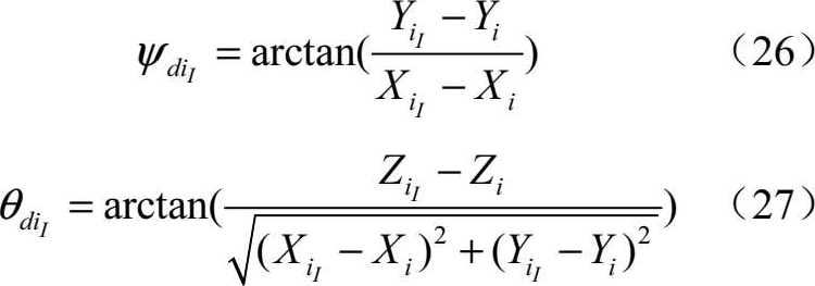 借助群智能思想 [12,14] ,对于满足式(1)、式(2)和式(3)的无人机编队系统,令 ψ pi 和 θ pi 分别为期望航迹偏角和期望航迹倾角,系统内部第 i 个无人机成员的基本飞行规则抽象为