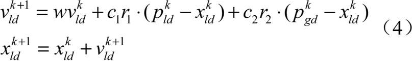 为粒子进化代数,粒子群优化进化更新算法如下: