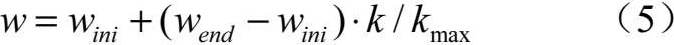 设定粒子群算法总进化代数为 k max ,采用线性递减策略对第 k 代的惯性权重系数进行更新