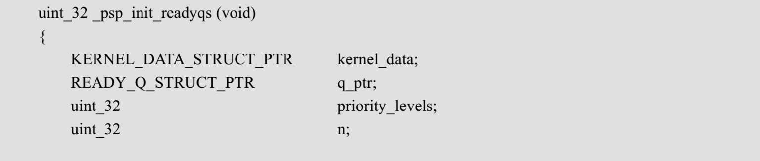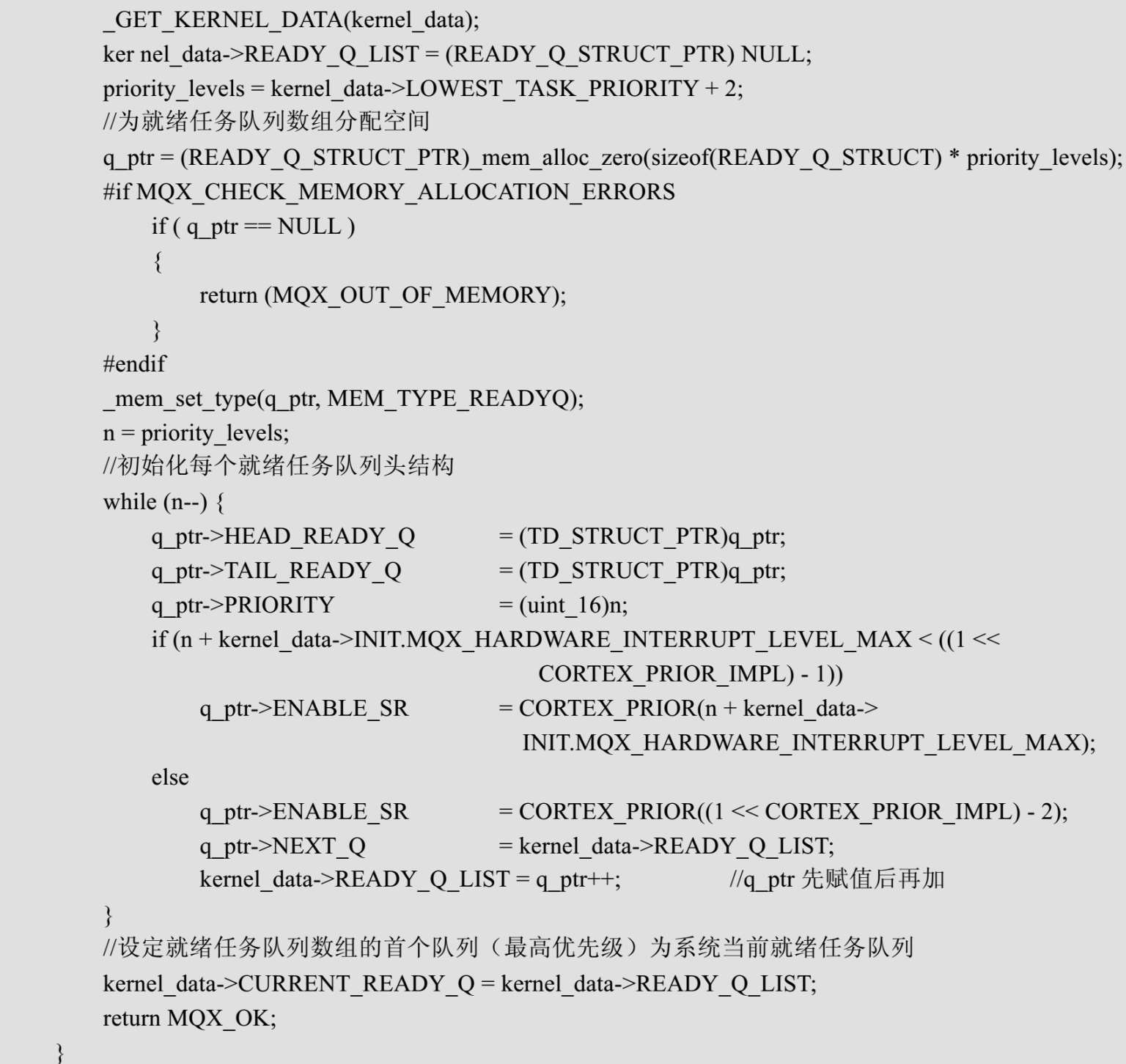 其中,_psp_init_readyqs函数位于在“..\MQX\psp\sc_irdyq.c”文件中,其源码如下。
