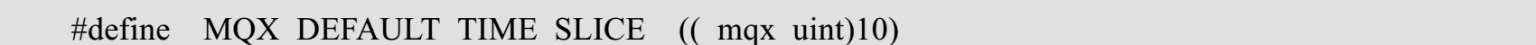 默认时间片长度的配置值MQX_DEFAULT_TIME_SLICE在“…\MQX\include”文件夹中的mqx_prv.h文件中定义,代码中默认将时间片设置为10 ms。