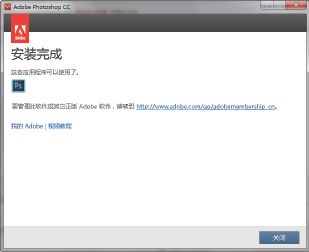 安装完成后进入“安装完成”界面,如图1-16所示显示安装完成。单击“关闭”按钮,关闭该界面,即完成安装。在“开始”菜单下可以找到安装完毕的Photoshop CC软件,如图1-17所示。