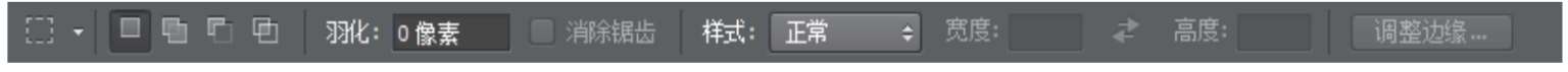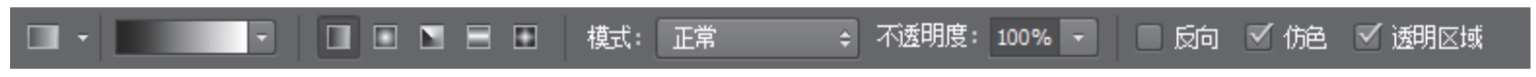 选项栏是用来设置工具选项的,根据所选工具的不同,选项栏中的内容也不同。例如:选择“矩形选框工具”时,其选项栏如图1-27所示;选择“渐变工具”时,其选项栏如图1-28所示。