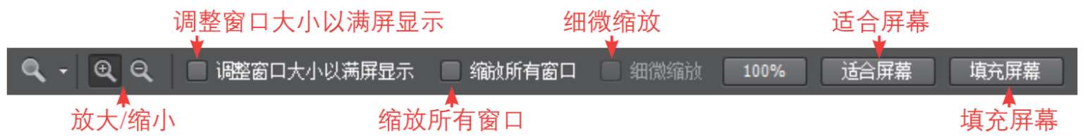 勾选该选项后,在画面中单击并拖动时,能够以平滑的方式快速放大或缩小窗口;取消该选择,在画面中单击并拖动,将出现一个矩形选框,松开鼠标后,矩形选框中的图像会放大至整个窗口。