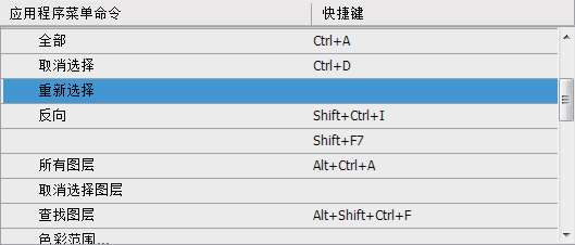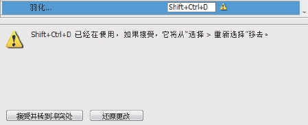 单击“接受并转到冲突处”按钮,完成对“羽化”命令快捷键的设置。可以对“重新选择”命令设置新的快捷键,也可以不再设置,如图1-73所示。