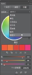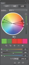 执行“窗口→扩展功能→Kuler”命令,打开“Kuler”面板,单击“创建”按钮,如图1-77所示。在“选择规则”下拉菜单中选择“自定义”命令,如图1-78所示。