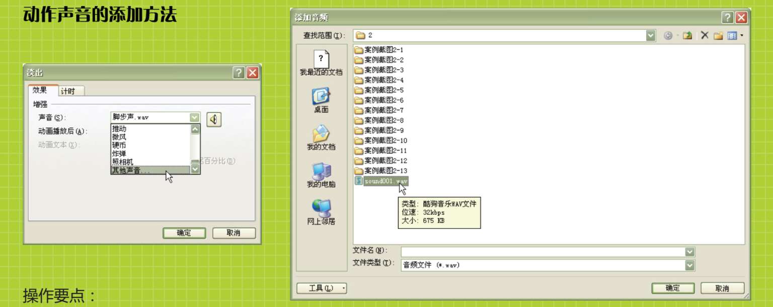 声音文件一般与背景声音的添加方式相同,只是有两点需要说明: