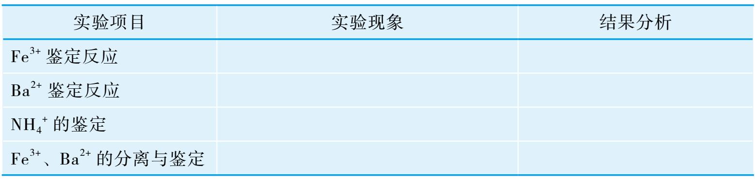 4. Fe 3+ 、Ba 2+ 的分离与鉴定 在一支离心管中加入20滴Fe 3+ 、Ba 2+ 混合液,再加入5滴2mol/L NaOH溶液,有沉淀生成。