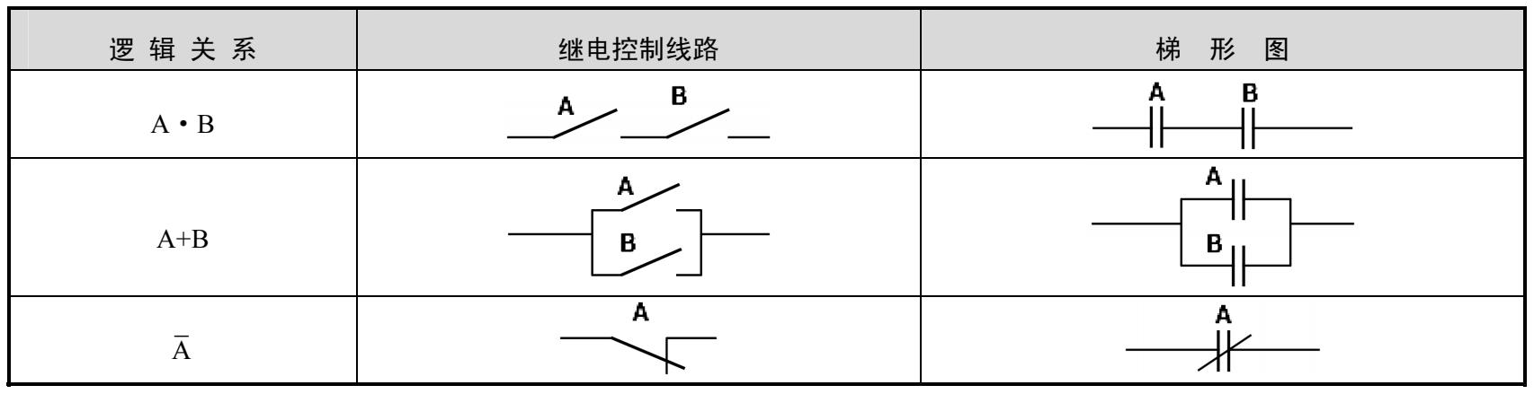 表 1.1-12 基本逻辑运算继电控制图及梯形图的对应关系