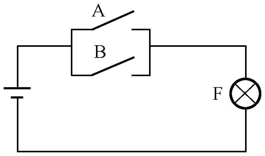 “与”逻辑是两个开关串联起来控制灯F,因此常把两个开关相串联的关系称为相“与”。如果A,B是并联起来控制一个开关,如图 1.1-4 所示。