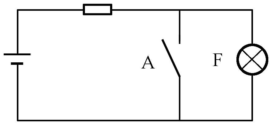 图 1.1-5 为基本逻辑运算中“非”运算的电路实现。当开关接通时,由于开关短路了灯F,所以灯F不亮;而当开关断开时,灯F亮。这种灯亮和灯不亮与开关的通断正好相反;如果把灯亮作为结果,而把开关的通断作为条件,则这种当条件具备时,结果不会发生,而当条件不具备时,结果发生了的逻辑因果关系在逻辑代数中被称为“非”运算。