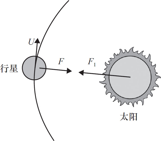 简单地计算一下,就能得出行星向着太阳运动的加速度与它的速度的平方成正比、与其到太阳的距离成反比的结论。这个结论比较直观:距离太阳越远,行星运动轨迹的圆弧越接近直线,所以加速度越小。