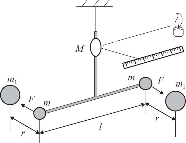 毫无疑问,地球半径相对容易测量,因为它是一个几何问题,只要我们在两个距离比较远的城市测量太阳的方向就行了。但是,如何测量地球质量却是一个难题,我们又不能将地球放在一个巨大无比的秤上去称。
