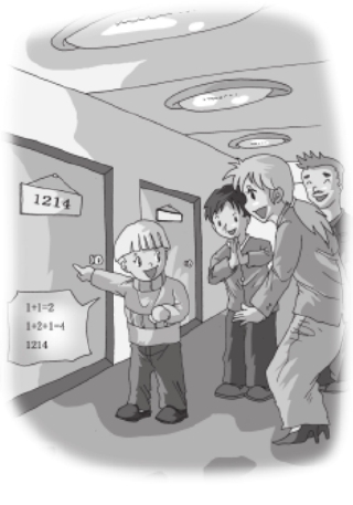 由于大家异常兴奋,把各自的东西放回房间后就匆匆结伴出去了。晚上,当他们回来的时候,许多旅客都忘记了自己所在的房间号,在楼下干着急。其中只有一名小男孩记住了房间的号码是“1214”,大家问他:“你是怎么记的呢?”他说:“其实很简单啊!第一个数字1和第三个数字1相加是第二个数字2,而前三个数字相加又是最后一个数字4。在我爸爸拿到房间号的时候,我只是这样想了一下,找到了其中的规律就记住了。”