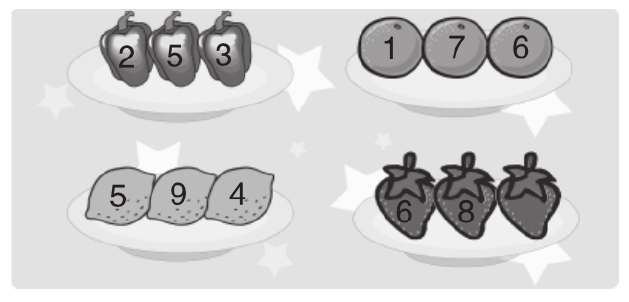 数字王国举行宴会,盘子里的水果上面都标着数字,而且有一定的规律,最后一盘数字没有写完整,你能写出来吗?