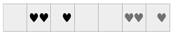 (1)如下图,一排7个方格里,前三格里放有3颗深色心形,后三格里放有3颗浅色心形。现在请你任选一种方法:把心形移到相邻的空格上去,或者跳过旁边的心形移到旁边的空格上去,但一次只能跳一格。