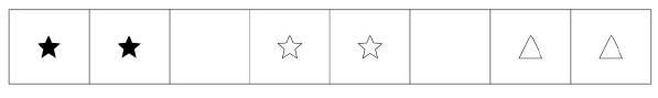 (2)如下图,图标可以移动,也可以跳跃,但每次只能移动或者跳跃一格。现在把★▲的顺序改成▲★的顺序(中间的位置不变),至少需要多少步? t/VPT3roZkxuXZaFFwOCD+zLV5ytQb+7hPsr3597uJk2nK9MOWPbkwhrL03WJ9j/