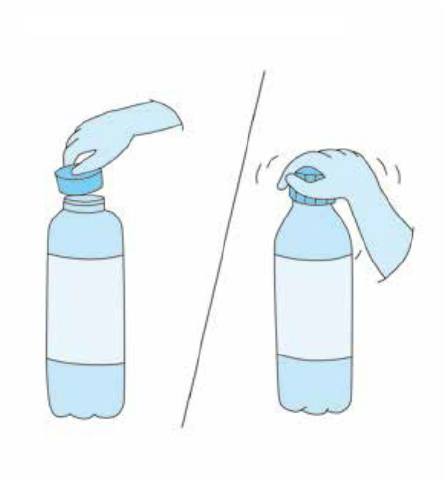 1.先用不带条纹的盖子套在矿泉水瓶上,旋转几圈后用力拧紧,然后再拧下来。