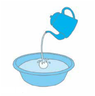 2.灌满一水壶凉水,对准乒乓球浇下去。