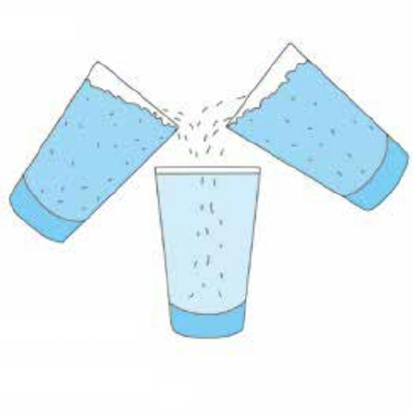 2.将等量的两杯白砂糖一点一点地放进盛满水的杯子里。会发现一个杯子的容量装进了三个杯子的东西。但是那两杯白砂糖去哪里了?