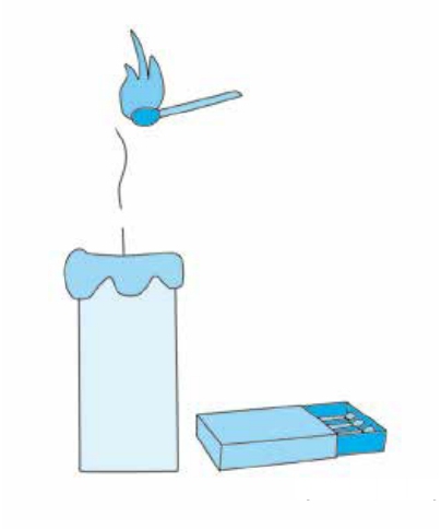 2.当烛心冒出白色的烟雾时,在烟雾上方划着一根火柴,一股火苗会立即卷入烛心,重新点燃蜡烛。