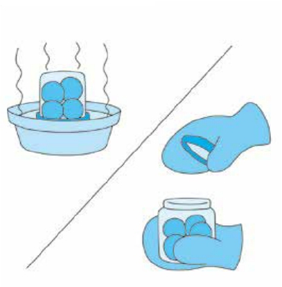 2.把罐头的瓶盖部分放入开水中烫30秒,然后取出。