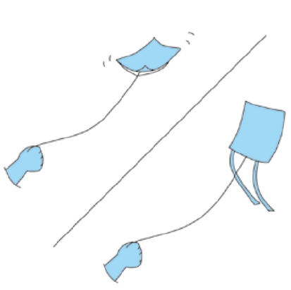 2.用剪刀剪两条长约30厘米、宽约3厘米的彩纸条,用胶带将其固定在风筝的末端,再挥动风筝,发现风筝平稳地摆动。为什么会产生这两种不同的效果呢?