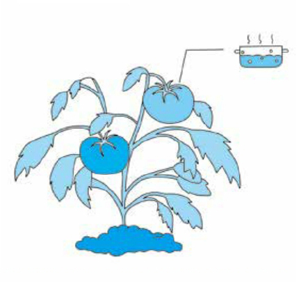 3.过一段时间再来观察,发现这株西红柿上其他果实全红时,这个被浸泡过的西红柿仍然是绿色的。
