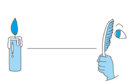 2.在距离蜡烛一米左右,将一根羽毛紧贴着眼睛,看点燃的蜡烛。