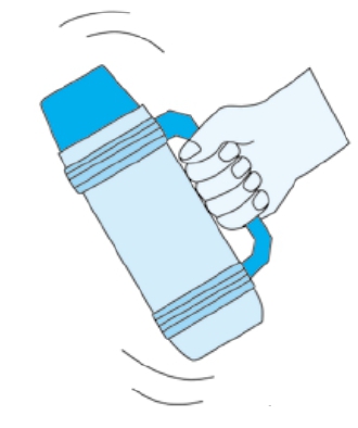 2.把瓶塞塞上,拿起开水瓶晃一晃。