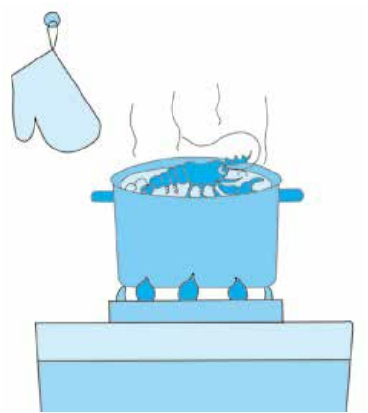 2.在锅里加入适量的水,把虾放入锅里,煮一会儿。结果,虾全变成了鲜红色。难道虾有变色的本领吗?