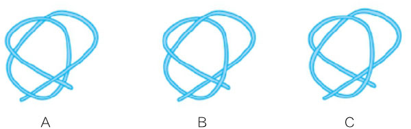 仔细观察图中的绳子,判断一下,哪一个会打成结?