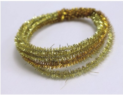 此款扭扭棒的材质为亮丝和金属丝,颜色较少。但因材质的特殊性,通常用于节日类作品的制作,如圣诞树装饰等。