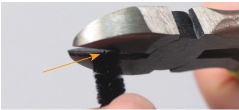 每当一根扭扭棒收尾时都需将扭扭棒的末端插入内侧。如需将扭扭棒末端留在外面作为装饰部件,就必须用尖嘴钳先将扭扭棒中间的金属丝尖端向内弯曲,再压紧,以防刮伤手。
