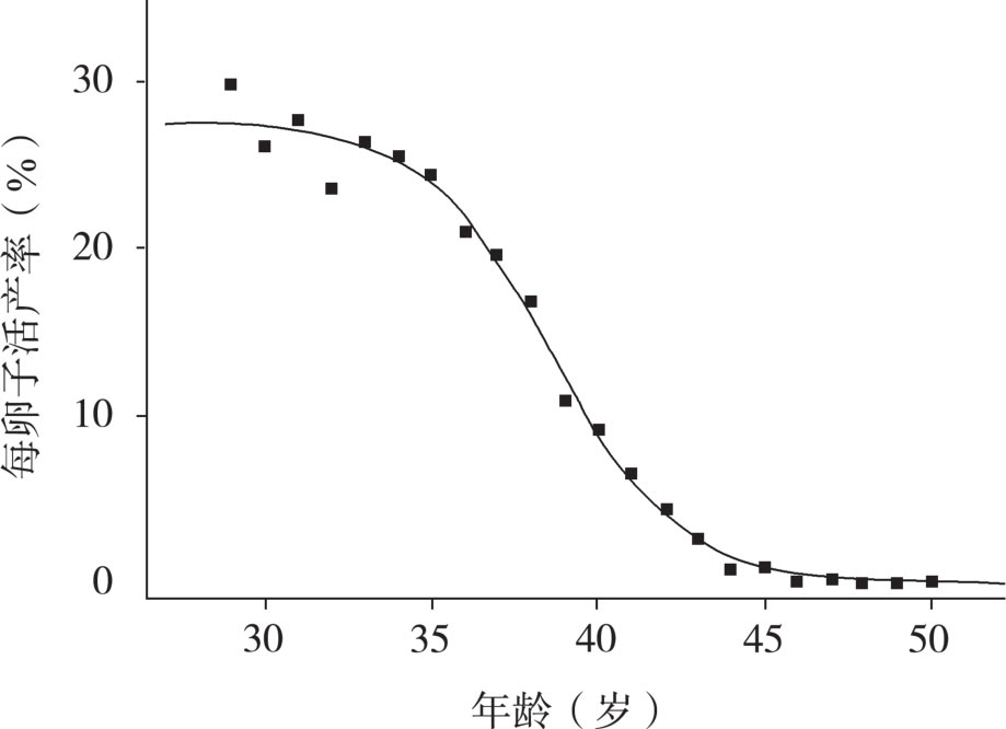为了更具体地回答这个问题,我们检索了相关的文献。其中有一篇文章用非常详细的数据解释了年龄与生育力的关系(图2-3)。