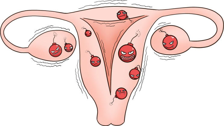 3.不孕 异位的子宫内膜作为异物,会引起大量的巨噬细胞的聚集,这种巨噬细胞会干扰卵巢的分泌和排卵功能,导致多种卵巢功能异常,如黄体功能不全,孕激素不足以维持怀孕;未破卵泡黄素化综合征(luteinized unruptured follicle syndrome, LUFS),卵泡不破形成黄素化囊肿等。另外EMT会引起盆腔组织和器官广泛粘连,输卵管僵直,从而影响卵母细胞的拾捡和受精卵的输送。