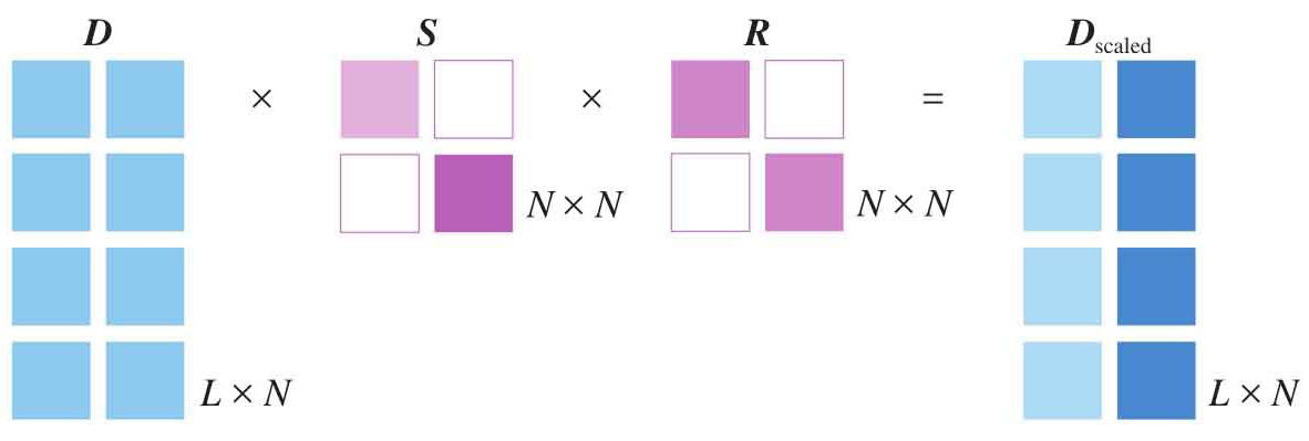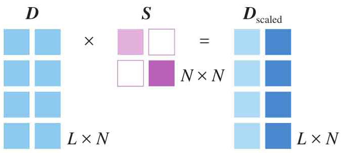 图1.11 形状为 L × N 的数据 D 的缩放计算