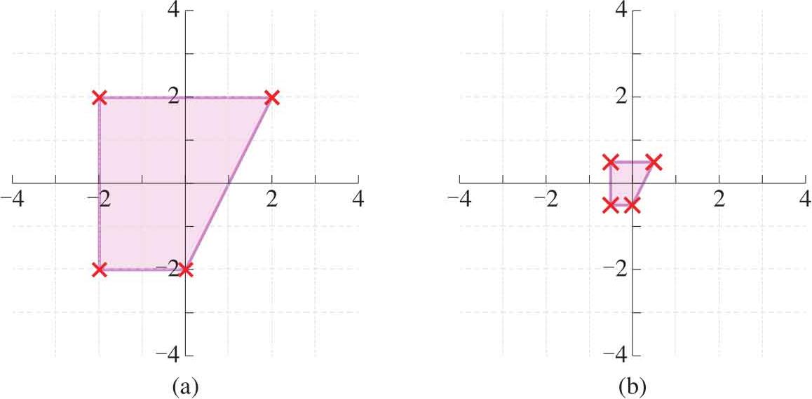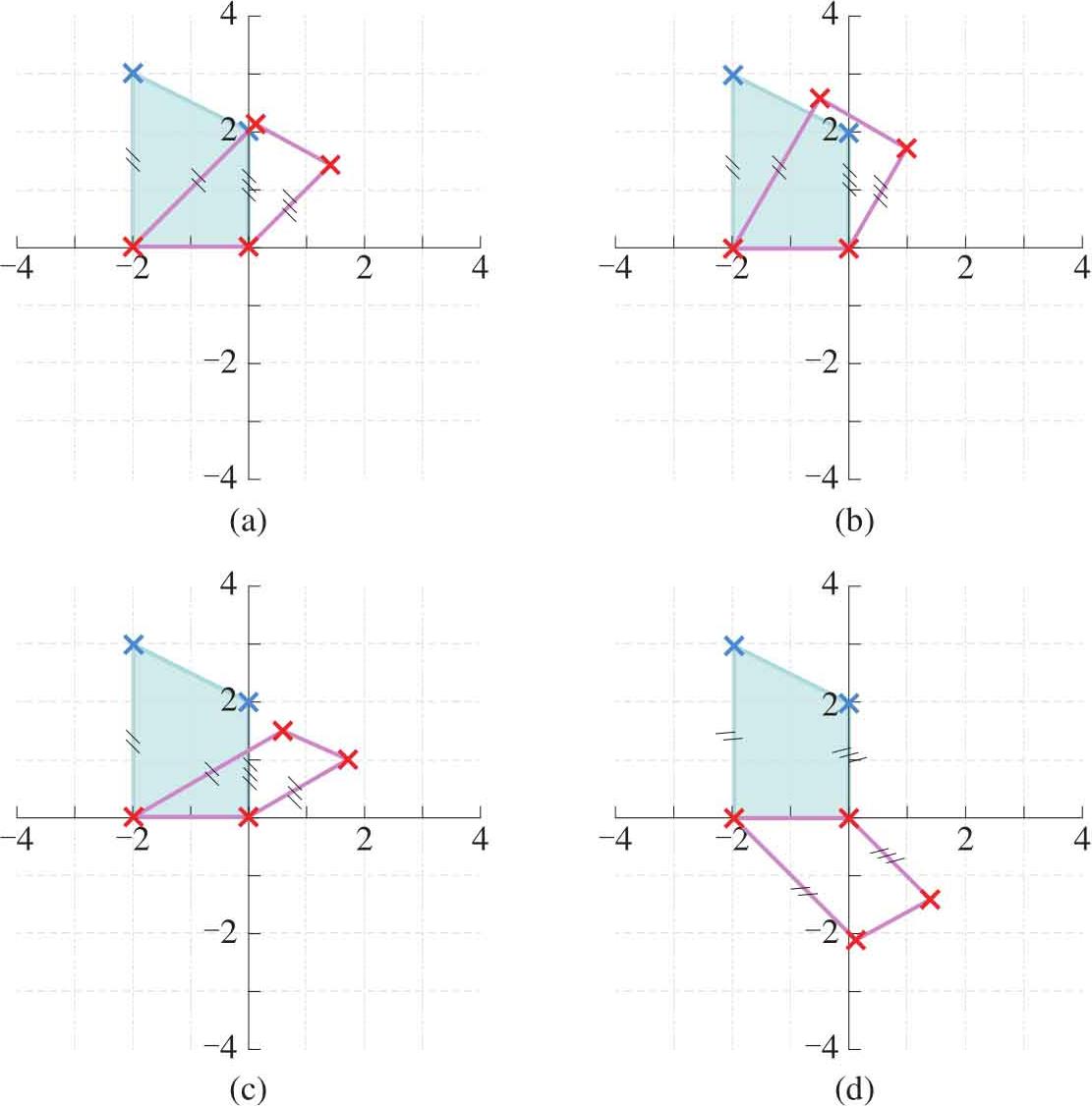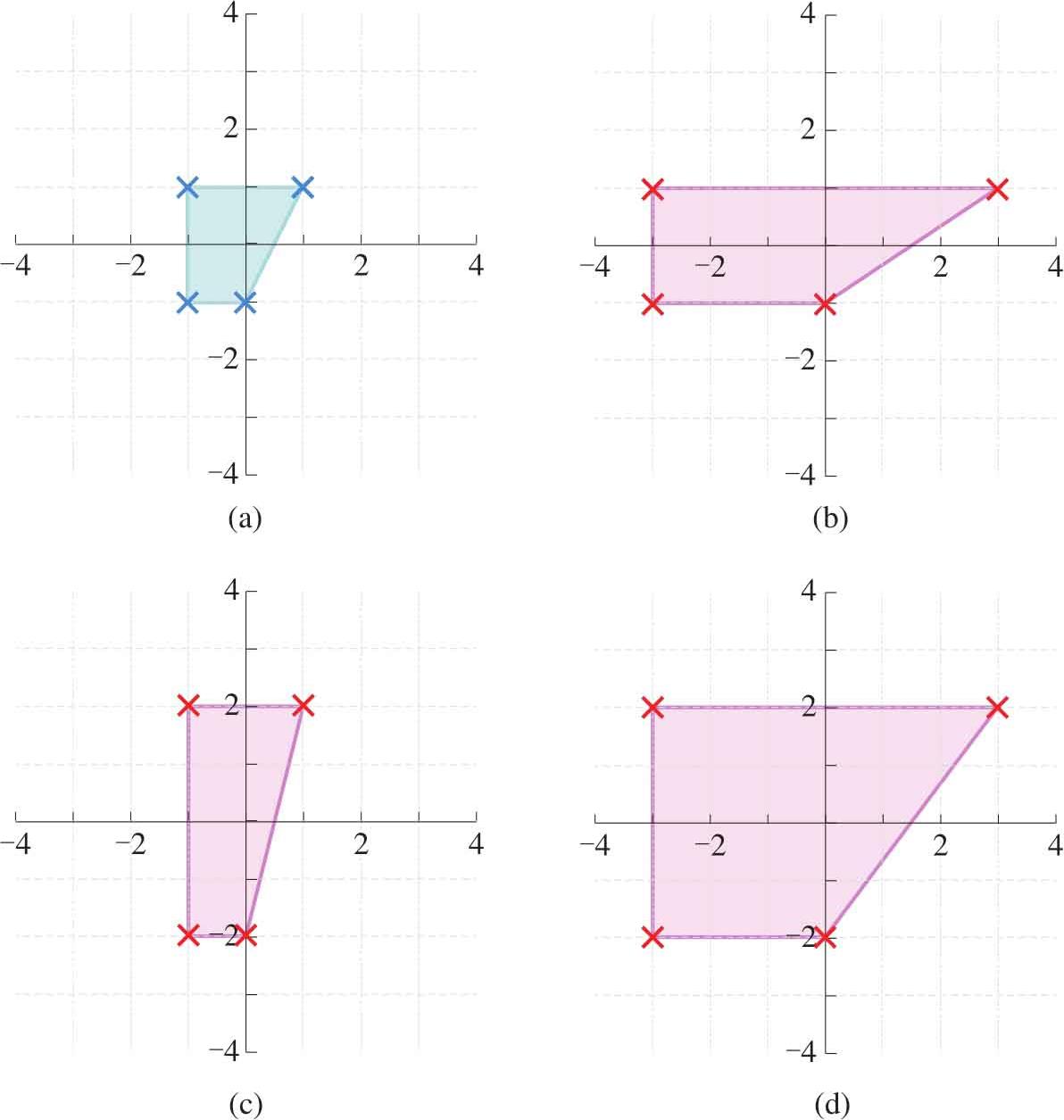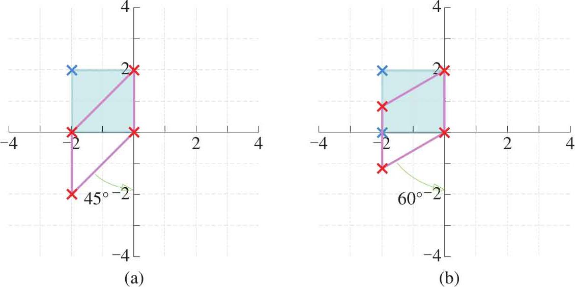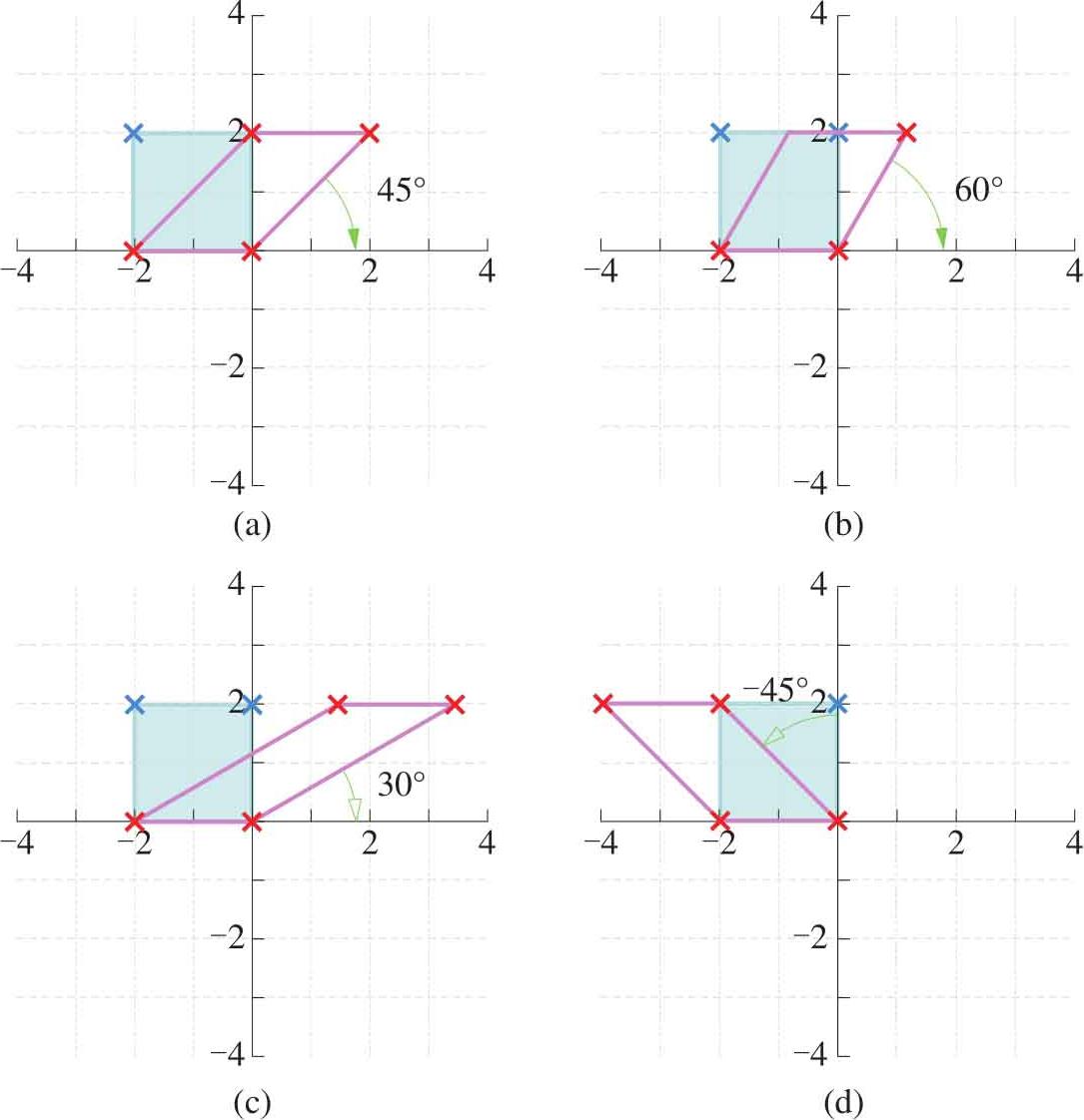 如图1.23所示是四个沿着 x 轴方向剪切转换的例子。沿着 y 轴方向的剪切转换矩阵为: