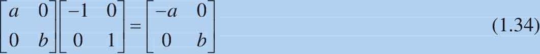 如果缩放比例 a 或 b 小于0会产生什么效果?如图1.14所示,分为三种情况把矩阵做一次分解。