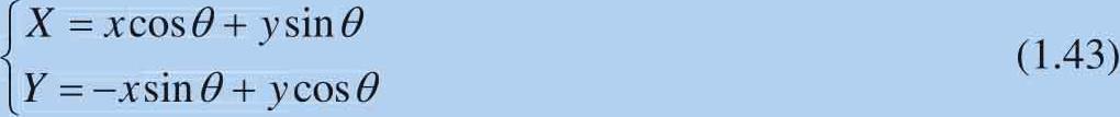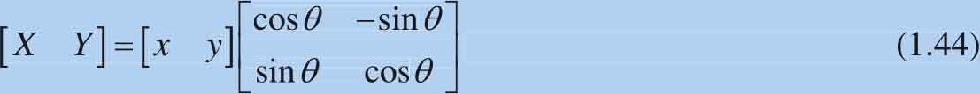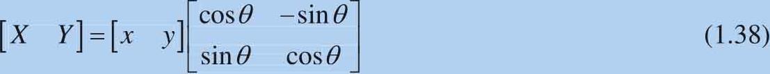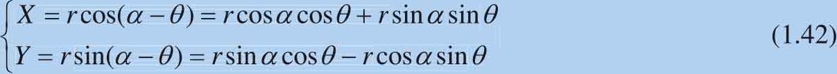 下面继续旋转操作的话题。一个坐标点( x , y )绕原点 顺时针 (clockwise)旋转 θ ,可以通过式(1.38)求得: