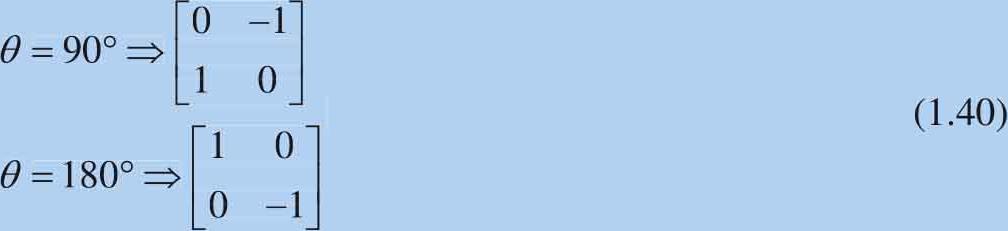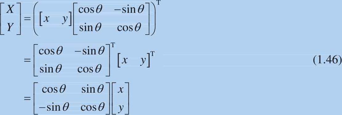 式(1.44)正是前文采用的旋转操作的矩阵。 D 的 逆时针旋转 (anti-clockwise)可以通过式(1.45)运算完成:
