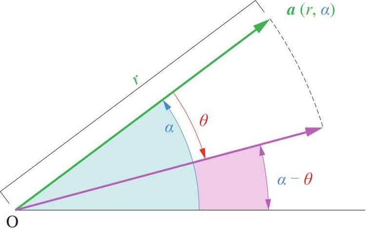 向量 a 顺时针旋转 θ 后,得到( r,α-θ )。