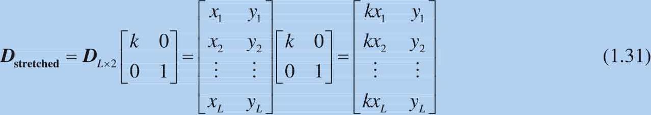 首先是沿 x 方向 拉伸 (stretching)。对原二维数组 D 在 x 方向 k 倍拉伸,可以通过矩阵运算得到:
