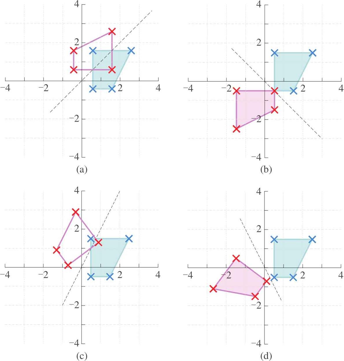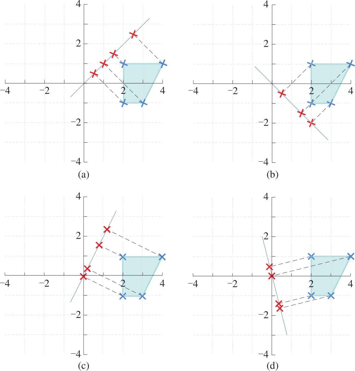 如图1.20所示是四个镜像的例子,镜像直线方向分别是(1,1)、(1, -1)、(1, 2)和(1, -2)。