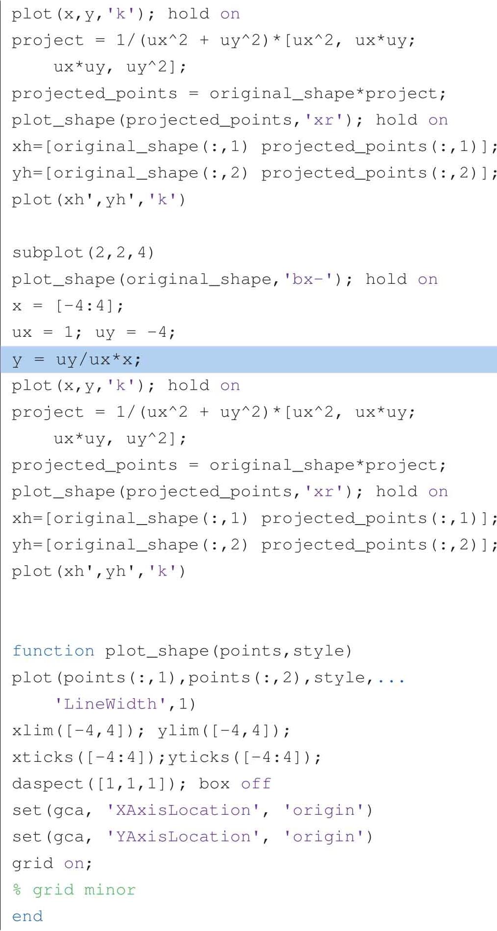 矩阵转化 (matrix transformation)是本书中矩阵运算的重点,矩阵转化可以将很多抽象的矩阵运算以几何方式展示出来。请读者注意,MATLAB函数的输入变量会采用特定的行向量或者列向量形式,与某些书籍的表达或推导并不完全一致。