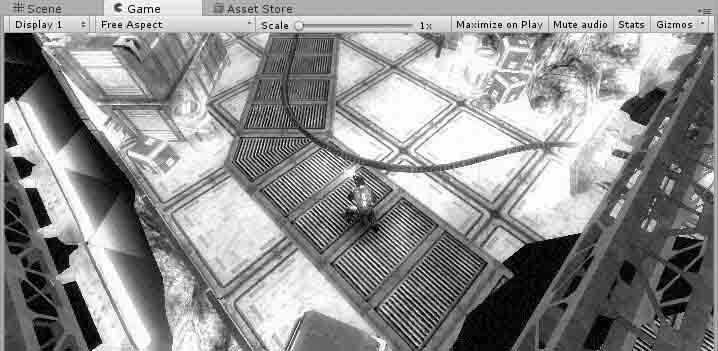 Unity中Game(游戏)视图用于显示最后发布后的项目运行画面,开发者可以通过此视图进行项目测试,单击“播放”按钮后,开发者可以在Game(游戏)视图中进行游戏的预览,并且可以随时中断或停止测试,如图2.35所示。